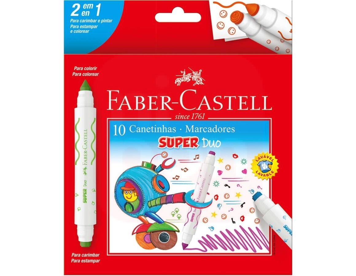 2. Canetinha 10 Cores SuperDuo + Carimbo - Faber-Castell